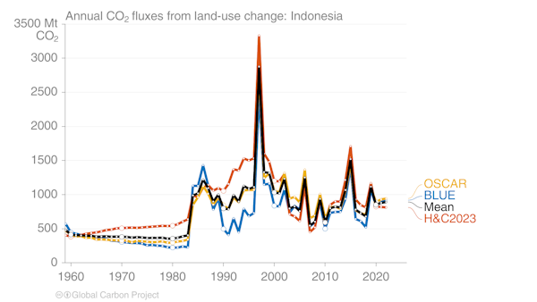 Tren Emisi CO2 tahunan Indonesia dari aspek alih fungsi lahan. Global Carbon Project