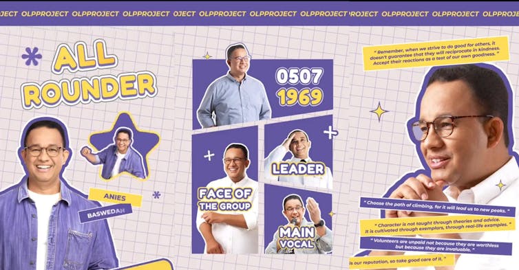 Jaringan penggemar Anies juga memproduksi konten digital berupa video yang didesain mirip dengan video promosi idol K-Pop. Akun X dengan username @olpproject bahkan membuka penggalangan dana untuk mempromosikan Anies secara sukarela. Video promosi Anies dengan gaya editan yang mirip idol K-Pop bahkan sempat tayang di area Grand Metropolitan, Kota Bekasi, Jawa Barat; Graha Mandiri Jl. Imam Bonjol, Taman Menteng, Jakarta; depan Hermes Palace, Jalan Pemuda, Medan, Sumatra Utara; depan Hotel Sahid, Surabaya, Jawa Timur; serta Graha Satria, Fatmawati, Jakarta.